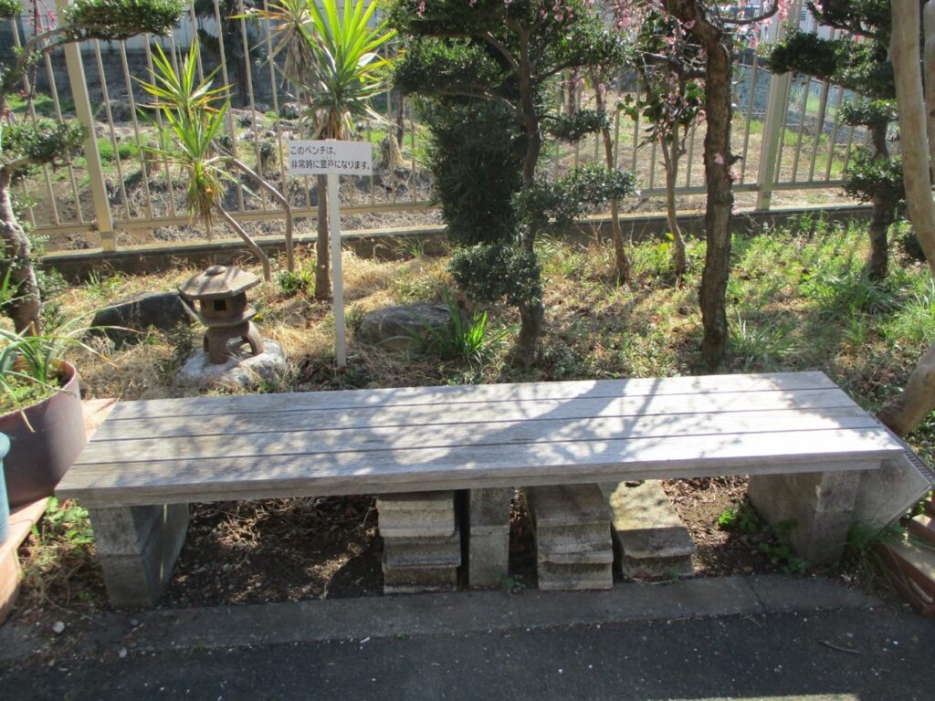 ふと見ると、憩いのベンチには「災害時にはかまどになる」との看板がありました。